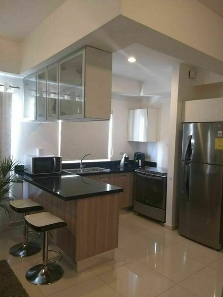 Completamente amueblado, piso 8, 95 metros aproximadamente, 2 habitaciones, sala/comedor, hermosa cocina, 2.5 baños, ascensor, planta full, gas común, 1 parqueo, hermoso lobby.